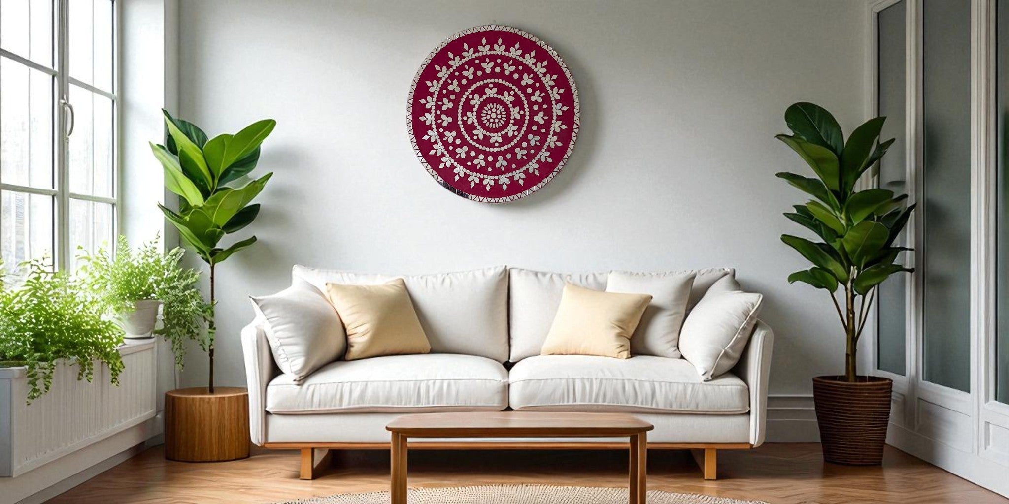 Crimson Bloom – Round Red Floral Mosaic Wall Hanging| Handmade by Mirroza