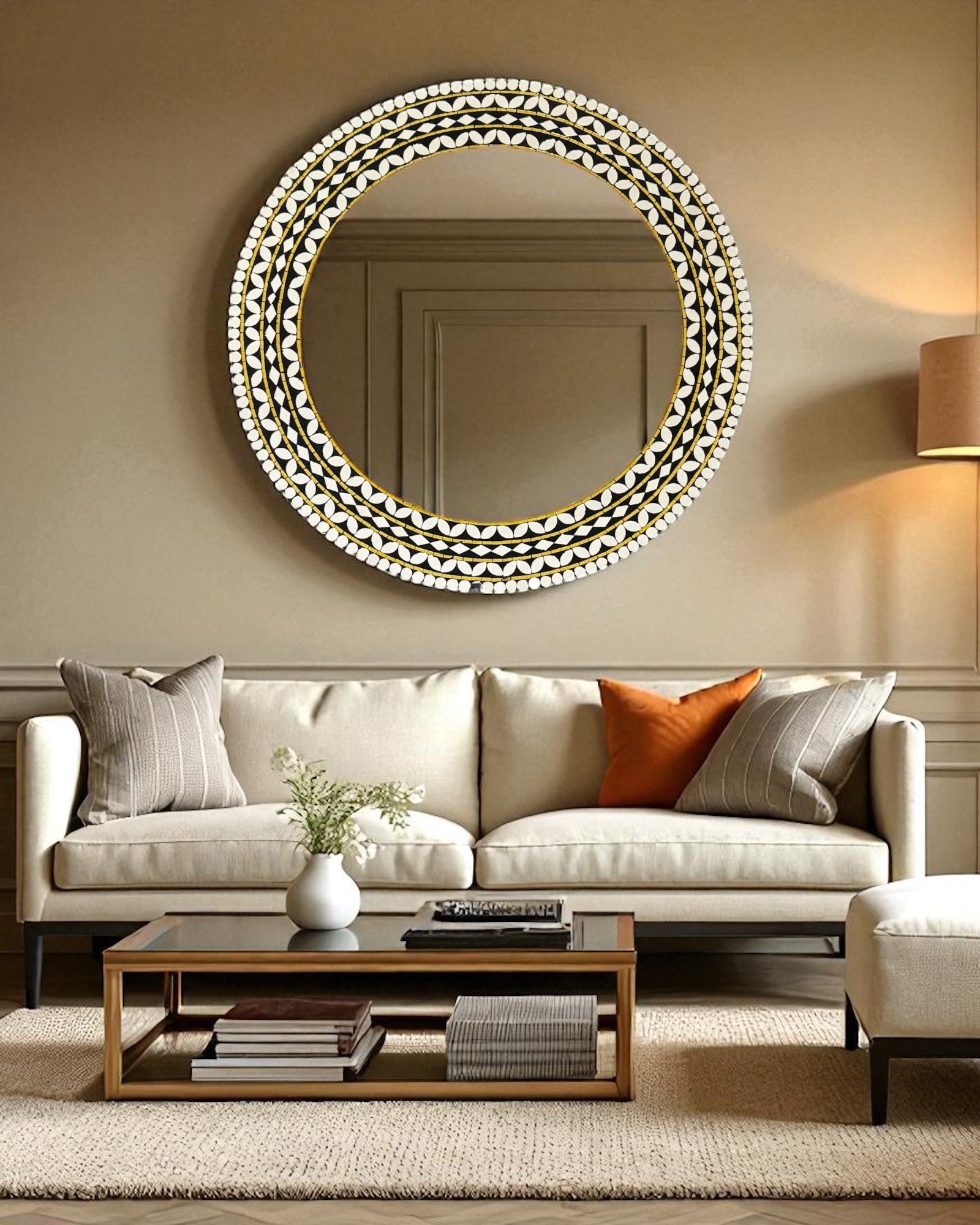 Ivory Mosaic Round Mirror – Handcrafted Wall Hanging by Mirroza